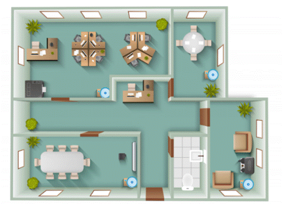 oficina, ofreciendo una visión general de sus diferentes partes,